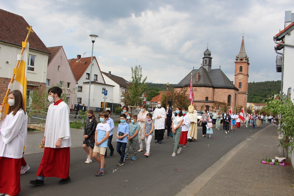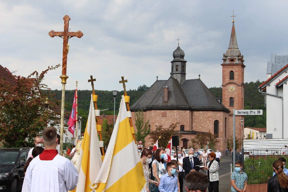 Mit einer feierlichen Eucharistiefeier und der Eucharistischer Prozession wurde auch im 2. Corona-Jahr das Fronleichnamsfest in St. Johannes Nepomuk gefeiert.