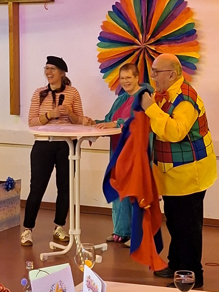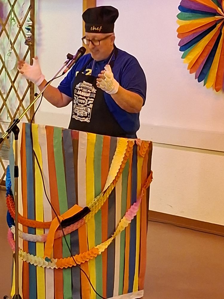 Bis fast um Mitternacht wurde dem begeisterten Publikum im voll besetzen Pfarrheim ein buntes Programm von Gesang, Vorträgen, Sketchen und viel Stimmungsmusik zelebriert und auch nach dem Programm war noch gemütliches Beisammensein angesagt. Zwischendurch wurde auf Faschingsart   Pfarrer KP Aul noch zum Geburtstag gratuliert.